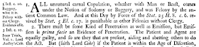 All unnatural carnal Copulation, whether with Man or Beast, comes under the Notion of Sodomy or Buggery...There must be some Kind of Penetration as well as Emission, but Emission is prima facie an Evidence of Penetration. The Patient and Agent are equally guilty, and so are they that are present, aiding and abetting others to do the Act.[16]